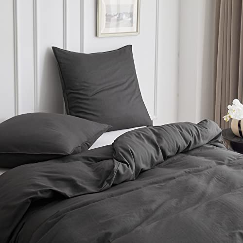 Simple&Opulence Biancheria da letto 155 x 220 cm, traspirante, set copripiumino in cotone e lino con federa di 80 x 80 cm, Oeko-TEX, colore antracite