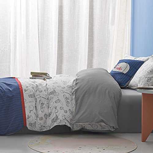 Simple&Opulence Set Copripiumino per Bambini - Set Biancheria da Letto per Bambini in Stile Cerniera in Cotone Organico al 100% per Ragazzi e Ragazze(Baseball, 120x150cm)
