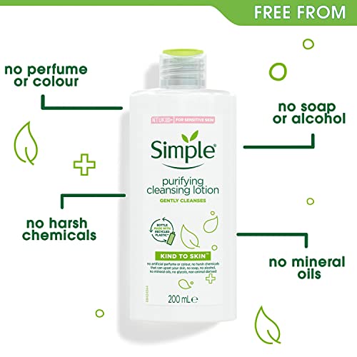 Simple Kind To Skin Purifying Cleansing Lotion, 200 ml, confezione da 6