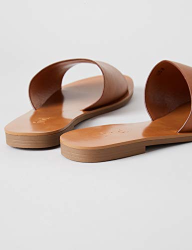 FIND Flat Simple Mule - Sandali a Punta Aperta Donna, Beige (Tan), 39 EU