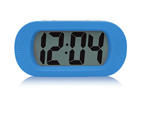 Simple Silent LCD Digital Large Screen Alarm clock snooze/light funzione batterie con cover in silicone (blu)