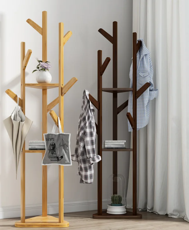 Simple coat rack solid wood floor type simple modern bedroom hanger room rack clothes rack home