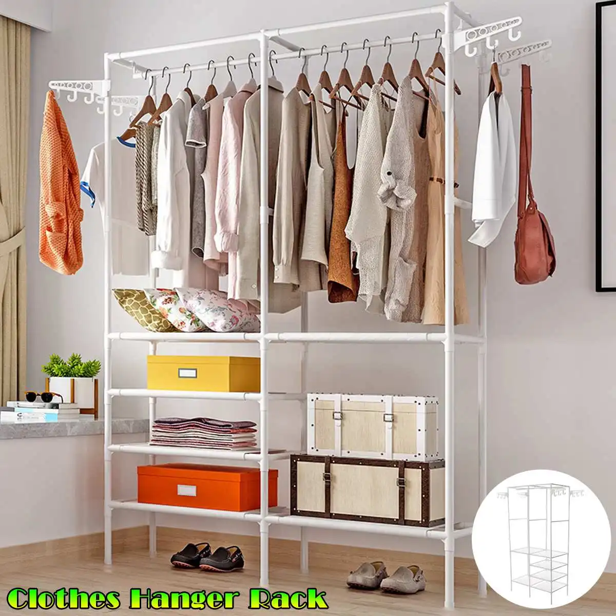 Simple Style Clothes Rack Floor Standing Clothes Hanging Colorful Storage Shelf Clothes Hanger Racks Couple Bedroom Furniture