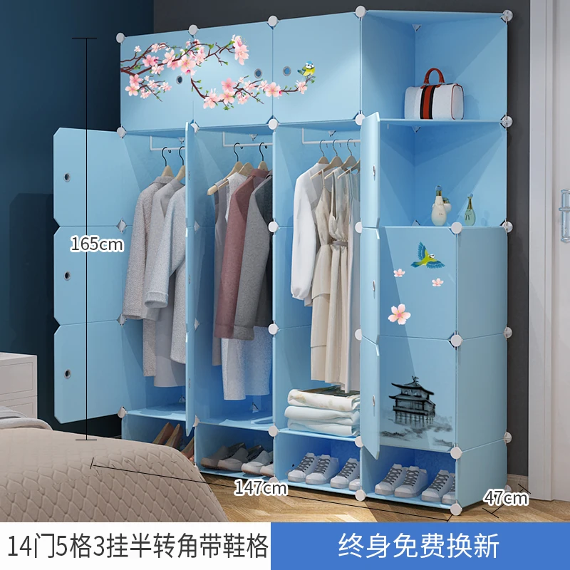 DIY Simple Wardrobe Modern Economical Assembly Household Imitation Wood Hanging Wardrobe Storage Plastic Cloth Large Wardrobe