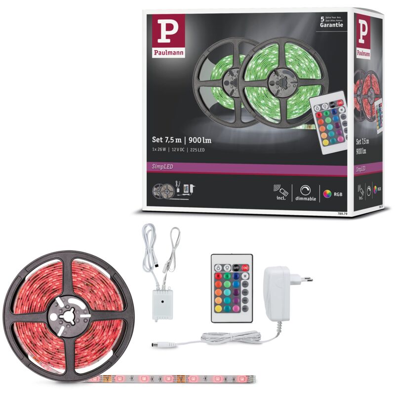SimpLED Strip impostato 5m 20W RGB - rivestite Il taglio striscia SimpLED, bastone alla lunghezza desiderata e collegarlo: quindi basta mettere accenti luminosi atmosferici su mobili o profili. I adatta materiale flessibile a una vasta gamma di substrati. Protezione contro polvere e acqua fornisce il rivestimento, in modo che l'uso di lavandino e lavello è possibile. Set operativamente pronti tra cui 230 / 12V di alimentazione con cavo e spina incl. Telecomando per la regolazione di colori ed effetti di luce indietro autoadesivo per una facile installazione semplice sistema per una facile installazione plug-in materiale flessibile per il montaggio su superfici piane o curve superfici della lunghezza richiesta può essere accorciato (a contrassegnati) rivestimento protegge da spruzzi d'acqua e polvere non espandibile non YourLED- e MaxLED strips combinato Caratteristiche: dimensioni in mm: altezza: 3, profondità: 10 peso in grammi: 332 illuminazione incluso 1x20 Watt incl flusso