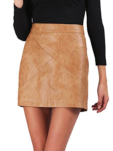 Simplee Apparel donne è autunno - inverno casual alta vita zip indietro mosaico breve finto cuoio mini gonna nera