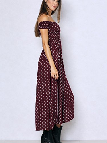 Simplee Apparel donne 'boho bardot da spalla a maniche corte polka dot alto diviso maxi vestito d'estate