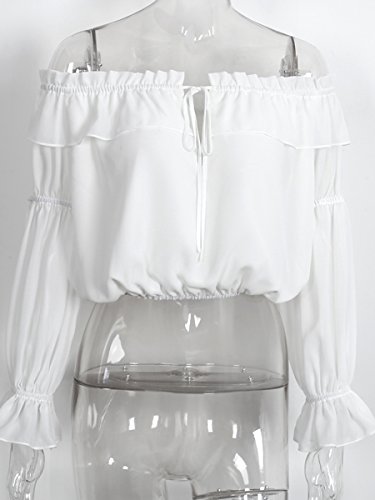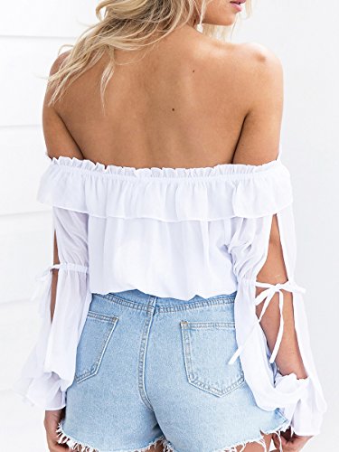 Simplee Apparel le donne prima divisa da spalla anti - serbo camicetta quinta top scollato estate chiffon camicia bianca