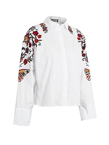 Simplee Apparel le maniche lunghe per abbassare il pulsante fiori ricamati camicia di cotone bianco camicetta sopra
