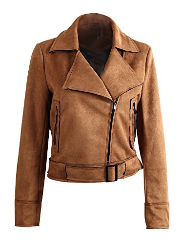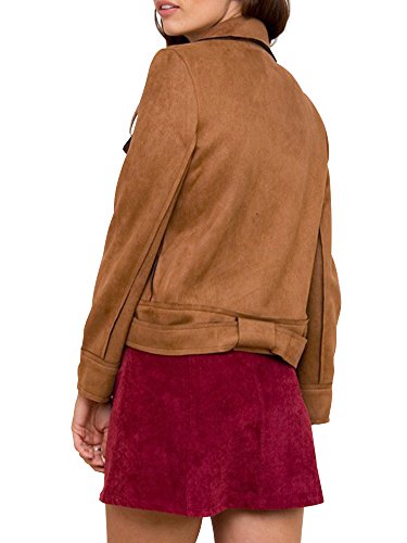 Simplee Apparele Donne e 'camoscio Chiudi Finto Cuoio Giubbotto da Motociclista Raccolto Cappotto Grigio