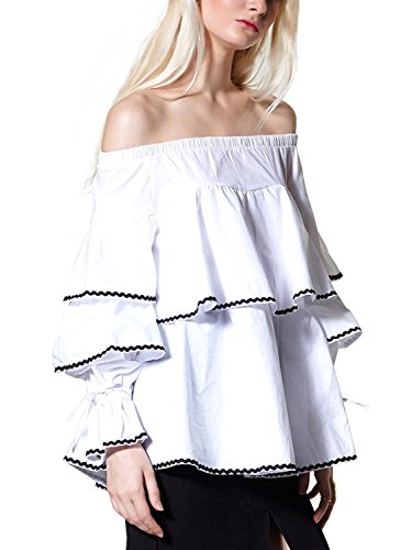 Simplee Apparele Donne Sanno Maglietta Cotone differenziati da Spalla Camicetta Bianca a Maniche Quinta Top