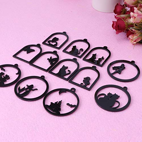 SimpleLife 12 Pezzi Acrilico Fai da Te Cornice Animale Ciondolo Lunetta impostazione Charms in Resina cabochon UV (Nero)