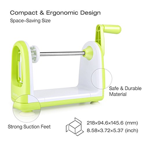 La scelta migliore: la migliore affettatrice a spirale per chiunque su un cibo crudo e dieta Low carb. Un regalo perfetto per le mamme, cuochi, e healthy-conscious gli amici. Aiuta anche a genitori rendendo le verdure più attraente per i bambini. Semplificare la vita facile, divertente, e sano. Un anno di garanzia, quindi contattarci immediatamente se vi è quello che si può aiutarla con per rendere la vostra esperienza ancora migliore.