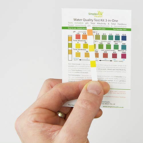 SimplexHealth Casa Acqua Test Kit 3-in-One (5 Strisce) - Bere Acqua, Laghetti, Acquari Per Totale Durezza, Totale Alcalinità E Ph