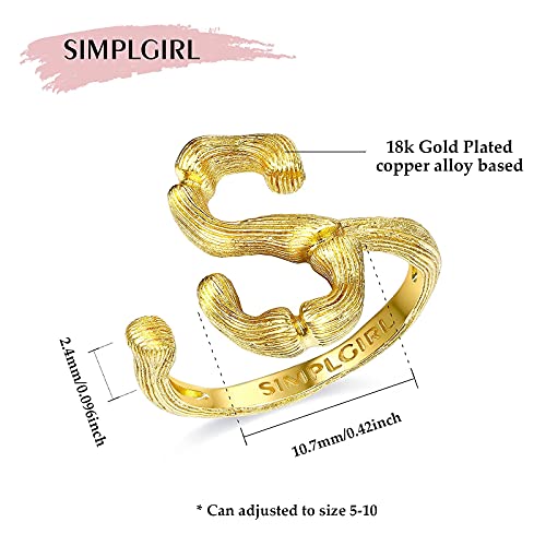SIMPLGIRL Anelli in oro Anello con lettera iniziale Anelli gioielli aperti regolabili placcati in oro 18k per donna uomo, lettera S