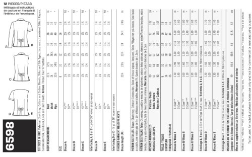 Simplicity New Look 6598 - Cartamodello per Camicie da Donna, Taglie: 38-48