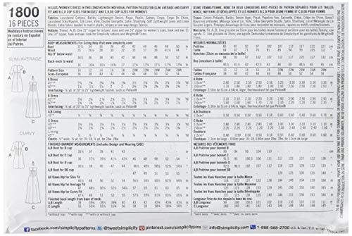 Simplicity AA 1800 - Cartamodello per Vestito da Donna, Taglie Varie