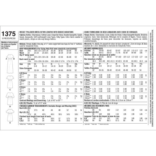 Simplicity 1375 Misura A», Pullover da Donna, Facili da Cucire Vestiti Sewing Pattern