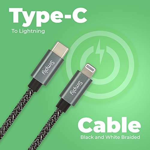 Simply ECO001 MFI Type-C a iPhone intrecciato nero ecologico 1,5 m cavo di ricarica per iPhone