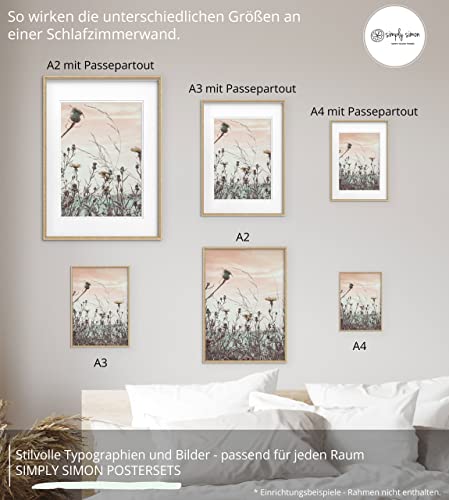 SIMPLY SIMON, set di poster con scritte, elegante decorazione moderna con citazioni, immagini in bianco e nero con stampe artistiche, per soggiorno e camera da letto, SET02 Smile, DIN A4