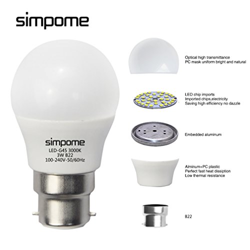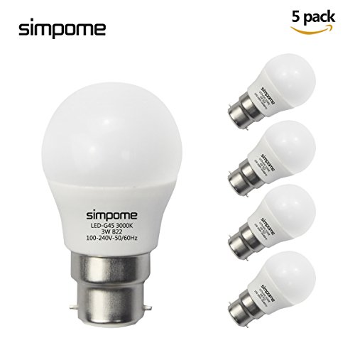 Simpome G45 B22 Bayonet LED Light Bulbs 3W(5 Pack), Warm White 3000K Golf Ball LED Bulb, 30 Watt Incandescent Bulbs Equivalent, 220 Degree Beam Angle, 240 Lumens, Non-Dammable