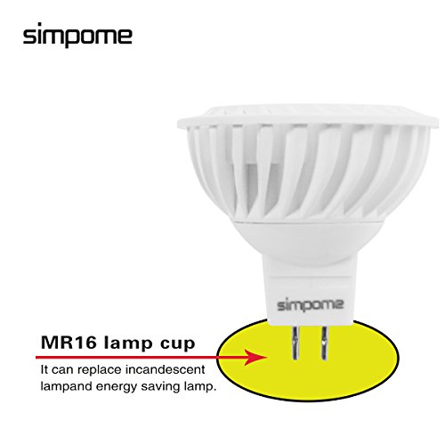 Simpome Lampadine LED GU5.3 MR16 12V AC/DC 6W, Pari a Lampadine Alogena da 50W, 540LM, Luce Bianca Fredda 6000K, Non Dimmerabile, Angolo a Fascio di 45°, 10 Pezzi