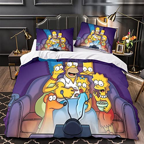 Simpson Copripiumino in Stampa 3D 3 Pezzi Biancheria Da Letto Anime Characters Copripiumino Traspirante Accogliente Microfibra copripiumino x1 pezzo federa x2 pezzi letto king size(220x240cm)