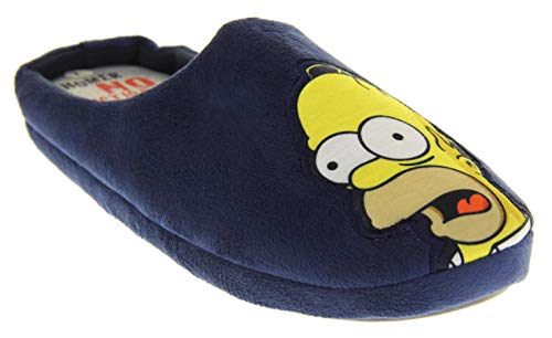 Uomo Simpsons Blu Marino Comode Pantofole Muli In Pile EU 43-44