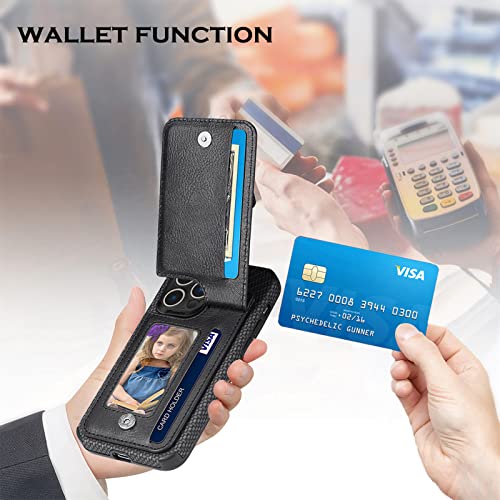 Simptech Cover per iPhone 14 Pro Max,Premio Modello della fibra Pelle PU Slot Schede Portafoglio Magnetico Kick Stand Flip Cover Antiurto Custodia protettiva (iPhone 14 Pro-Nero)