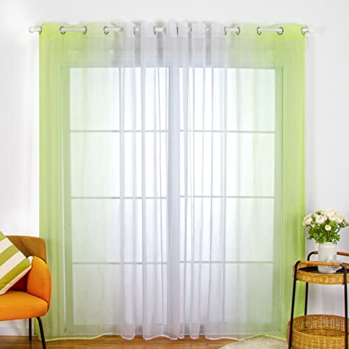 SIMPVALE 2 Pezzi Tende Trasparente - Tenda in Voile di Colore Stile Sfumato per Camera da letto Soggiorno Balcone, Verde con bianco, 140x145cm