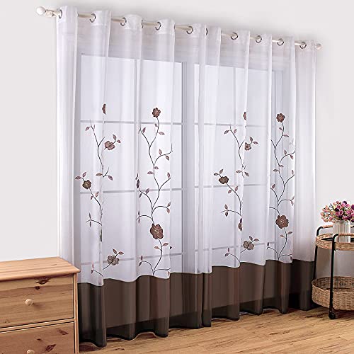 SIMPVALE - Tenda con ricamo floreale per camera, larghezza 140 cm, Poliestere, marrone, Hauteur 245cm