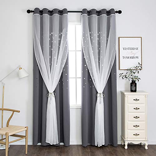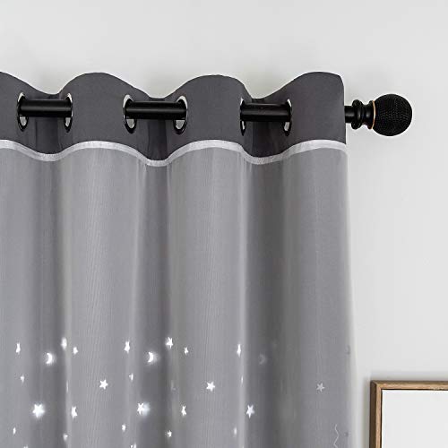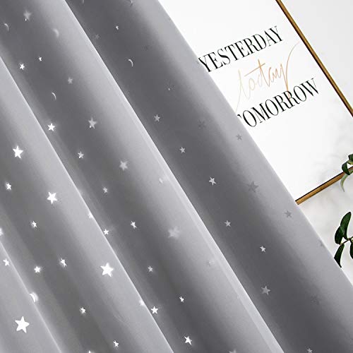 SIMPVALE Tende Oscuranti Termiche Isolanti Stelle Luna Tende da Finestra Doppio Strato con Occhielli per Bambini Camera da Letto Soggiorno,1 Pannelli, Grigio, L140 x A240cm