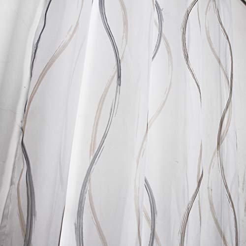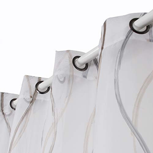 SIMPVALE Tende 2 Pannelli Trasparenti con Occhielli - Voile con Disegno a Strisce - per Finestre Camera da Letto e Soggiorno Balcone 140X270cm Marrone Chiaro