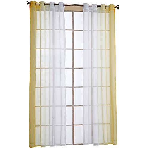 SIMPVALE Tulle Tende Trasparenti - Anello con Occhielli Top Gradient Colour Sheer Voile Valance - 2 Pannelli Tende Lunghe per Balcone, Camera da Letto e Soggiorno, 140x145cm, Giallo con Bianco