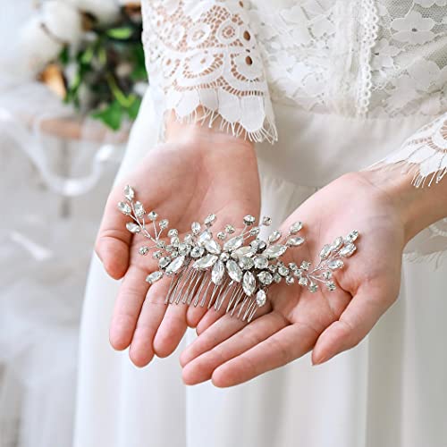Simsly Accessori per copricapo da sposa Pettine per capelli da sposa Pettine per capelli con strass Pettine per capelli da sposa per ragazze damigella d'onore (argento)