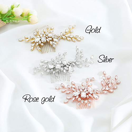 Simsly Bride - Pettine per capelli da sposa in cristallo, per donne e ragazze, colore: argento o oro