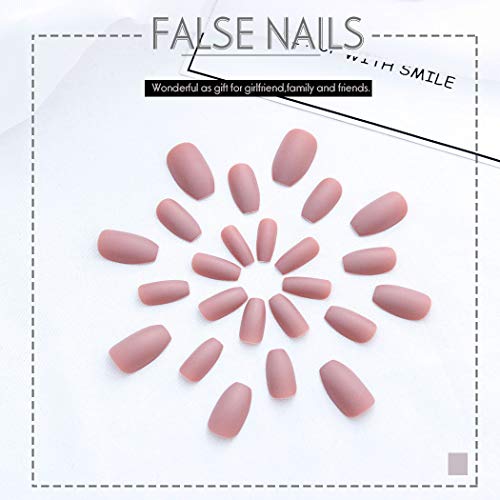 Simsly Coffin Unghie finte Rosa opaco Lungo Unghie finte Set Stampa artificiale su copertina completa su unghie per donne e ragazze (24 pezzi)