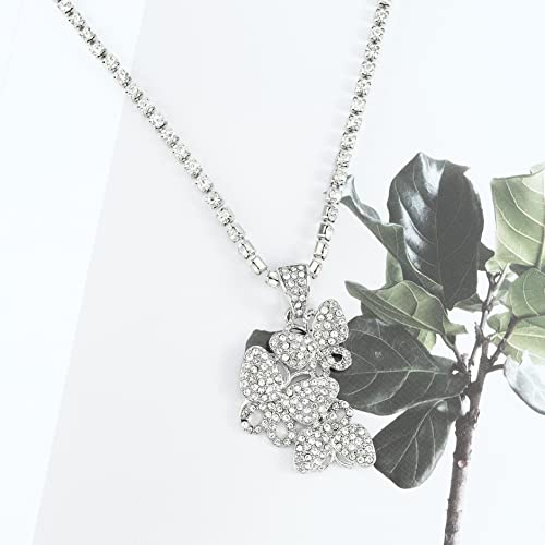Simsly Boho - Collana girocollo con ciondolo a forma di farfalla, in argento, con strass a doppio strato, gioiello per donne e ragazze