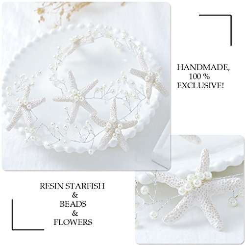 Simsly Decorazione per capelli da sposa con stelle marine, colore argento, per donne e ragazze