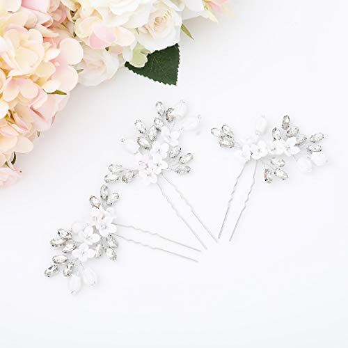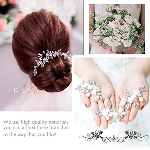 Simsly Fermagli per capelli a forma di fiore da sposa, Forcine per capelli con cristalli argentati, accessori per capelli per donne e ragazze
