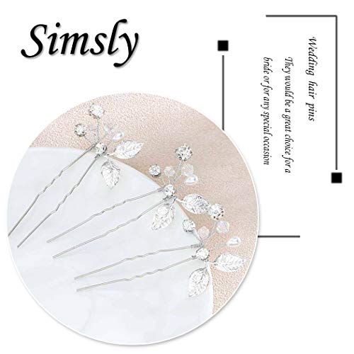 Simsly forcine per capelli da sposa con foglie di sposa, accessori per capelli con strass per donne e ragazze (5 pezzi)