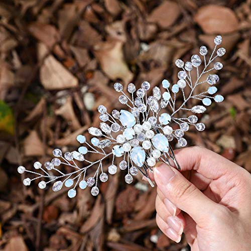 Simsly Pettine per Capelli da Sposa in Cristallo Pettine Capelli Matrimonio Accessori per Capelli Sposa in Argento con Perle per sposa e damigelle
