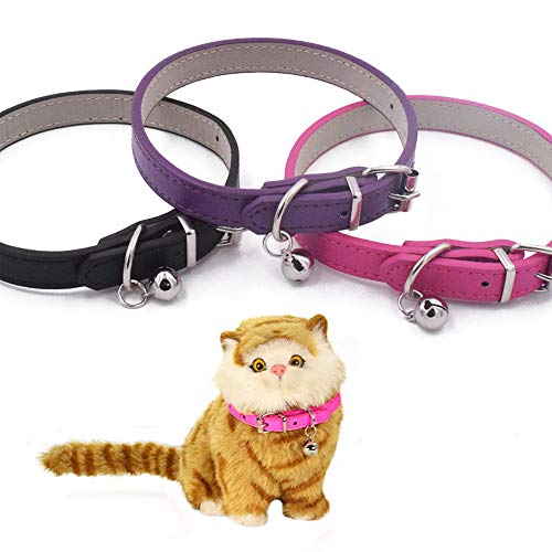 SIMUER 3 Pezzi Gatti Collare in Pelle PU, Collari per Gattini con Sonaglio Regolabile Adatto alla Maggior Parte dei Gatti Domestici
