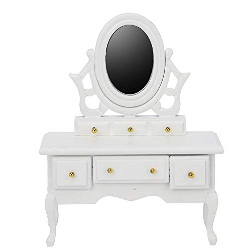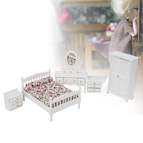 1:12 Simulazione Mobili in Miniatura per Case delle Bambole 5 Pezzi Set di Accessori da Camera da Letto Letto+Toletta+Armadio+2 Comodino Doll House Giocattolo Cognitivo Regalo per Bambini (A)