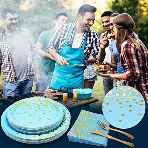 SIMUR 80 Pezzi stoviglie per Feste Blu Piatti da tavola Piatti di Carta tovaglioli Tazze Piatti da Dessert per la Cena USA e Getta per Forniture per Feste di Compleanno, Matrimoni