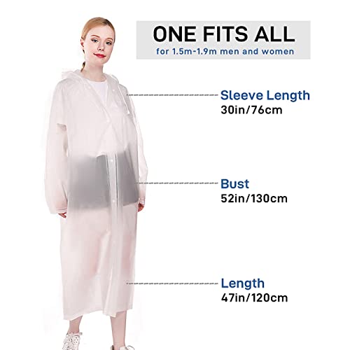 Materiale ecologico impermeabile: questo poncho impermeabile riutilizzabile è realizzato in materiale EVA 100% ecologico, nessun odore, atossico, resistente agli strappi per un uso durevole e confortevole. Il design trasparente e la lunghezza perfetta possono proteggerti dalla pioggia e trattenere il tuo fascino alla moda per i giorni di pioggia.