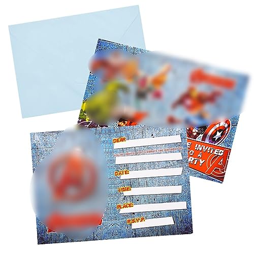Simyron 8 Inviti per Feste Compleanno di e Buste Biglietto Invito Compleanno Ragazzo Biglietto D'invito Compleanno per Bambini Forniture supereroi Party Invito di Compleanno per Bambini