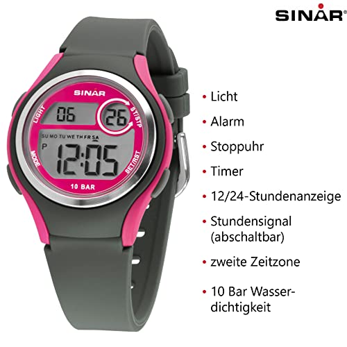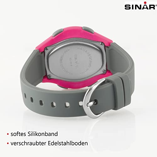 SINAR Orologio da polso da ragazza/ragazza/ragazza/sportivo, digitale, LCD, al quarzo, 10 bar, cinturino in silicone XE-64-8