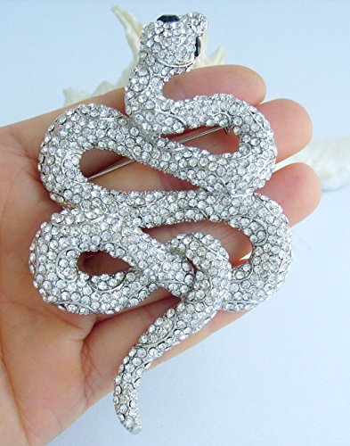 Sindary, spilla a forma di serpente con cristalli Swarovski, 10 cm, codice prodotto UKB5847 e Lega, colore: Silver-Tone White Clear, cod. UKB5847C1