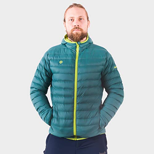 IZAS SINDU Padded Jacket with Hood, Uomo, Dark Aqua/Lime, XL